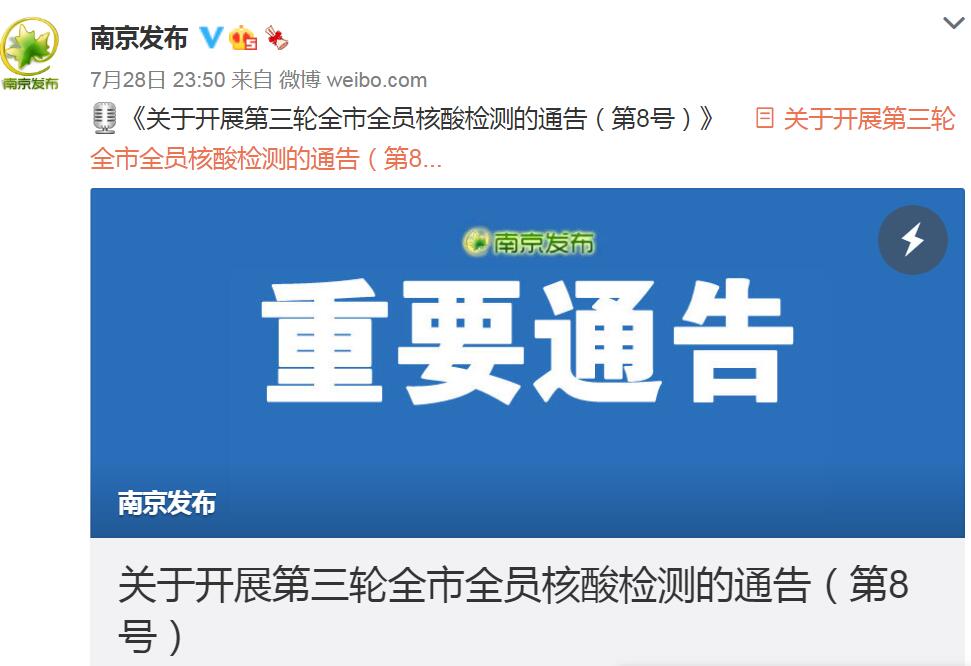 來(lái)源:“南京發(fā)布”微博檢測(cè)范圍:全市范圍內(nèi)全部居民(含暫住人...