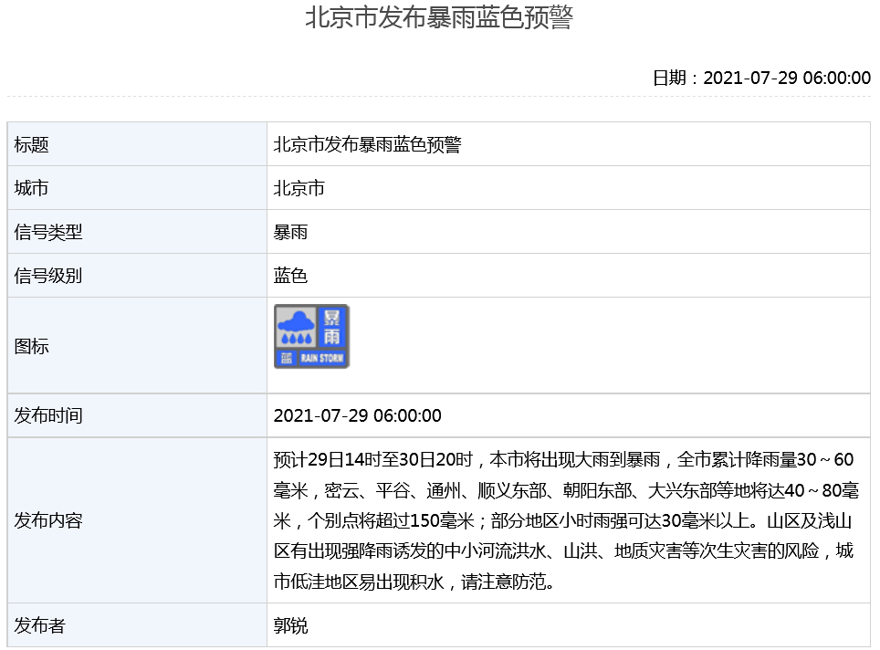 來(lái)源:北京市氣象局此后,北京市平谷區(qū)、通州區(qū)、朝陽(yáng)區(qū)相繼發(fā)布...